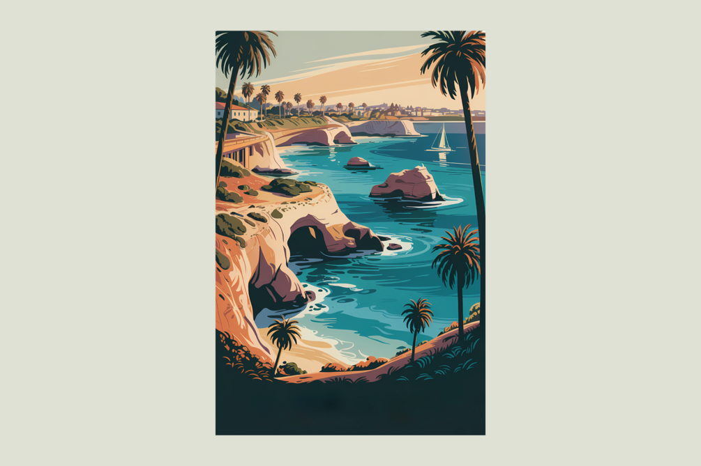 Bring San Diego to your walls with this beautiful illustrated city poster!